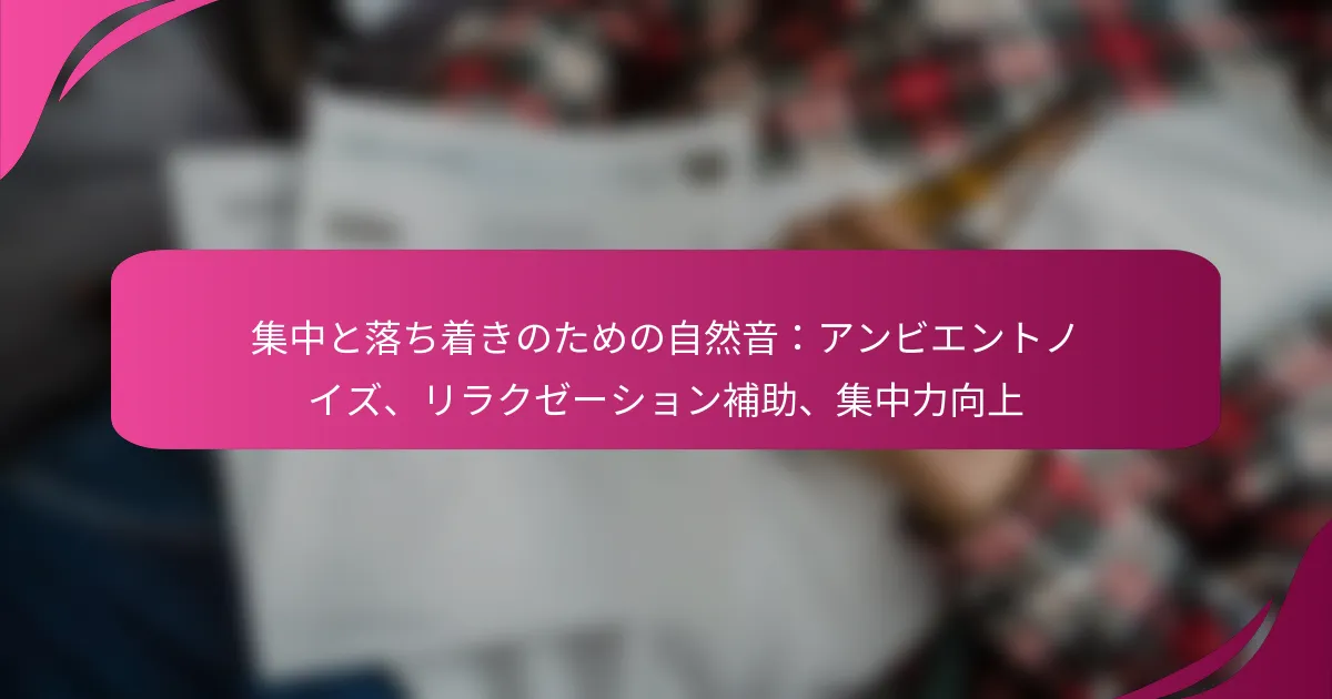 穏やかな雨、海の波、心地よい鳥のさえずりなどの自然音は、集中力を高め、落ち着きを促進する環境を作り出します。これらの自然の音景を環境に取り入れることで、集中力を向上させ、よりリラックスした雰囲気を作り出すことができるため、仕事や勉強のセッションに最適です。 自然音とは何か、そしてそれが集中力と落ち着きにどのように役立つのか? 自然音とは、雨、海の波、鳥のさえずりなど、自然環境から発生する環境音を指...