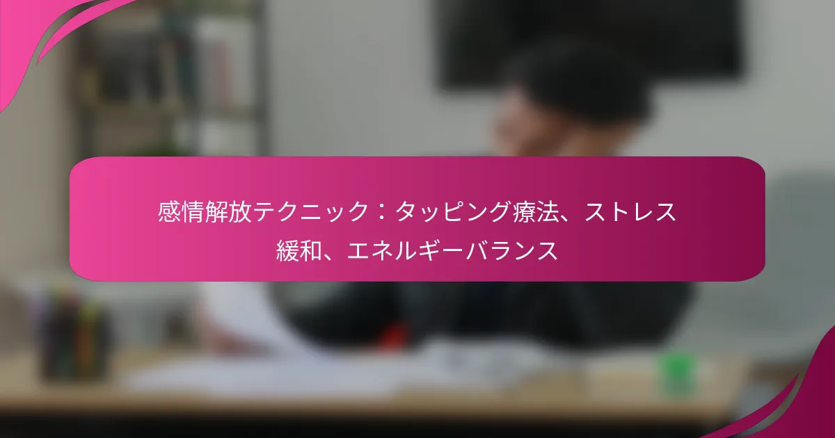 感情解放テクニック(EFT)、またはタッピング療法は、心理学の原則と指圧を組み合わせたホリスティックな方法で、感情的苦痛を軽減し、エネルギーバランスを回復するのに役立ちます。特定の経絡ポイントをタッピングしながらネガティブな感情に集中することで、個人は不安を効果的に軽減し、全体的な感情的健康を向上させることができます。 感情解放テクニック(EFT)とは? 感情解放テクニック(EFT)は、タッピング...