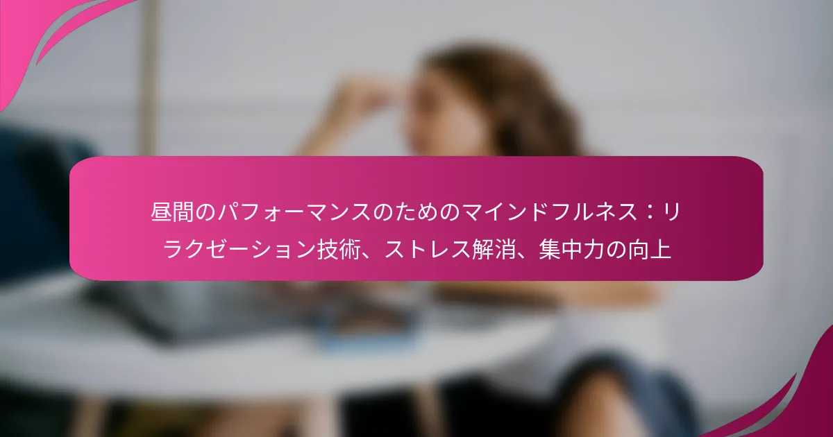 マインドフルネスは、瞬間ごとの意識を育む強力な実践であり、ストレスを軽減し、集中力を高めることで日中のパフォーマンスを向上させます。ガイド付き瞑想や呼吸法などのリラクゼーション技術を日常生活に取り入れることで、個人は効果的にストレスを管理し、全体的な幸福感を高めることができ、タスクにおける生産性と効果性が向上します。 マインドフルネスとは何か、そしてそれが日中のパフォーマンスをどのように向上させる...