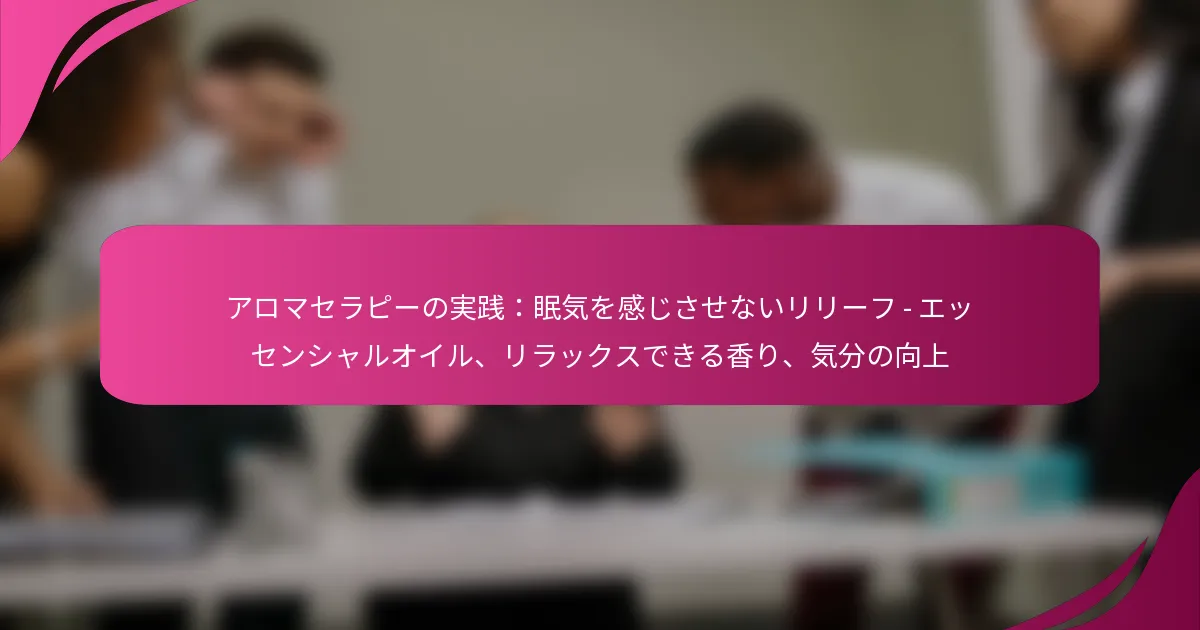 アロマセラピーは、眠気のリスクなしに気分や精神的な明晰さを高める自然なアプローチを提供します。シトラス、ペパーミント、ローズマリーなどの高揚感をもたらすエッセンシャルオイルを取り入れることで、個人はエネルギーと集中力の向上を体験できます。これらの穏やかな香りはストレスを軽減するだけでなく、感情的な健康を促進し、全体的な心理的健康を改善するための効果的なツールとなります。 眠気を引き起こさないための...