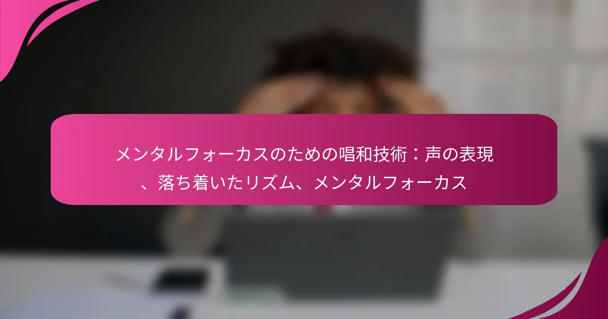 唱和技術は、声の表現を活用して心を落ち着けるリズムを生み出し、精神的な集中力を高めます。これらの実践に参加することで、個人は一人でもグループでも集中力と明瞭さを向上させることができます。心地よいシーケンスの構造化された繰り返しは、リラクゼーションを促進するだけでなく、脳の活動を同期させ、マインドフルネスや瞑想に最適な穏やかな状態を育みます。 精神的な集中力を高めるための唱和技術とは? 唱和技術は、...