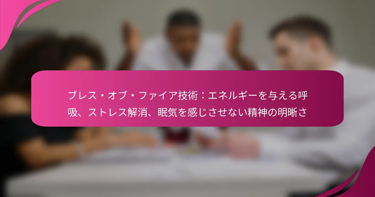 ボックスブリージングテクニックは、落ち着きを促進し、眠気を引き起こすことなく集中力を高めるための構造化された方法です。吸気、保持、呼気、再び保持するというシンプルなパターンに従うことで、個人は効果的にストレスを管理し、認知の明瞭さを向上させることができます。 ボックスブリージングテクニックとは? ボックスブリージングテクニックは、眠気を引き起こすことなく集中力を高め、落ち着いた状態を誘導するために...
