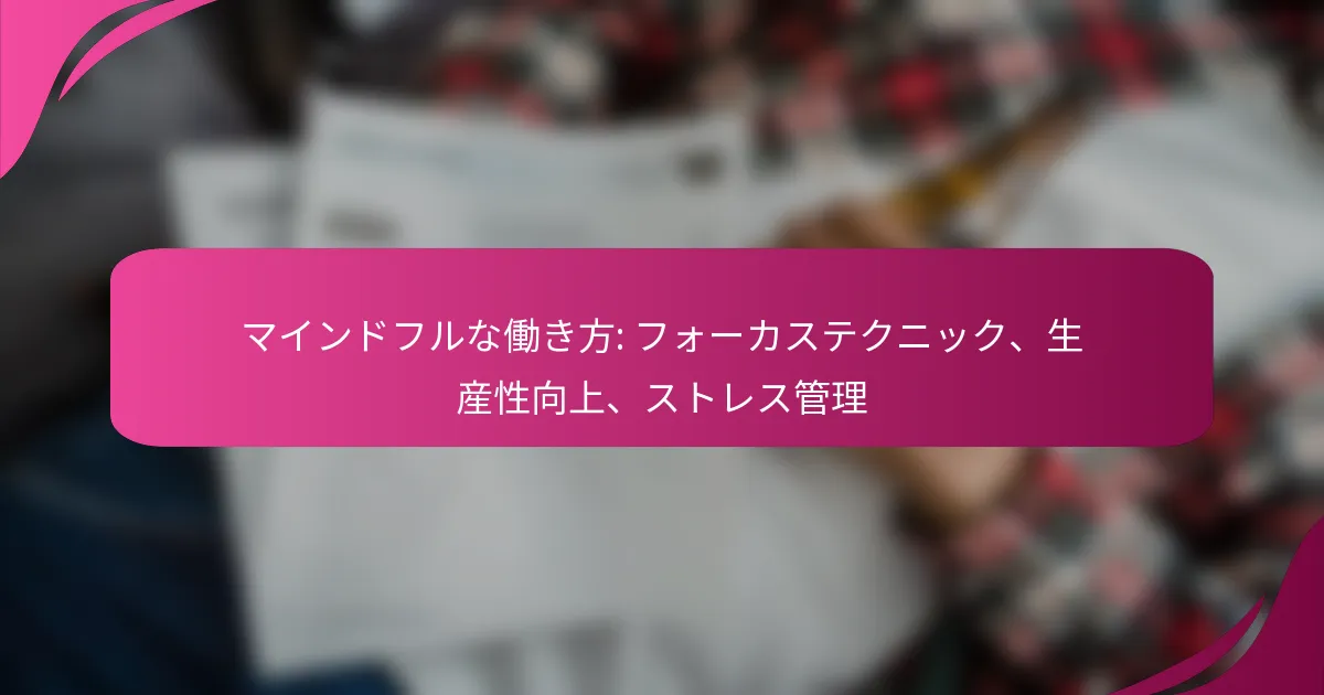 テクノロジーを使用しながら集中力を向上させるには、集中を促進し、気を散らす要因を最小限に抑える構造化された技術が必要です。ポモドーロ・テクニック、マインドフルネスの練習、特定のアプリを利用する方法を実施することで、個人はより良いデジタルバランスを達成し、ストレスを効果的に管理することができます。