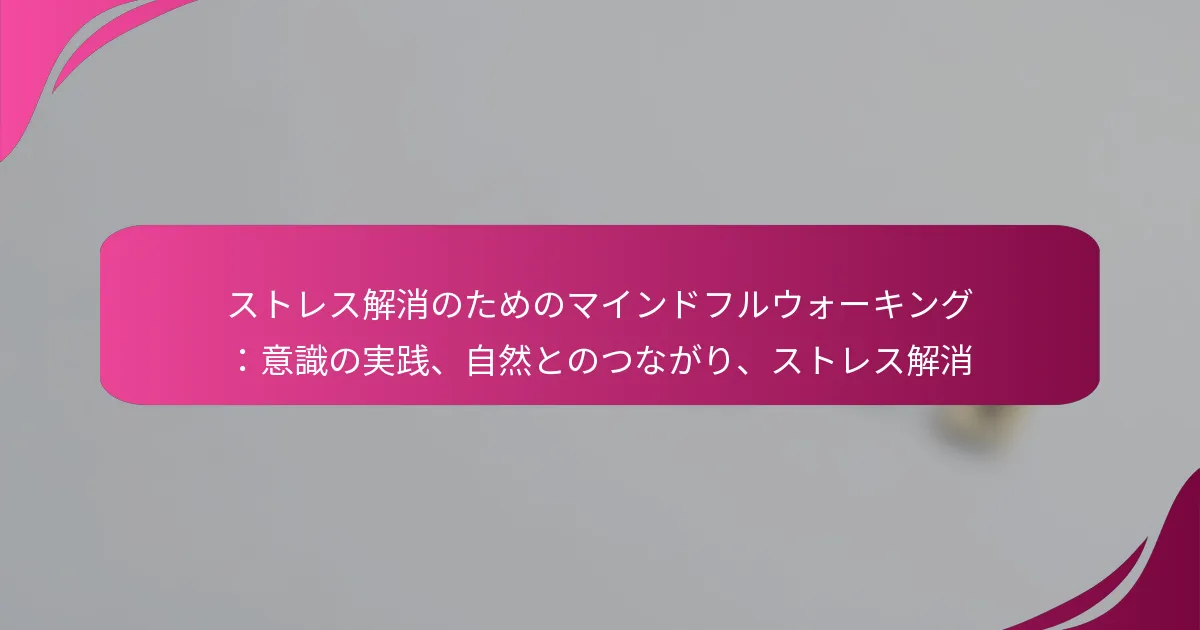 マインドフルウォーキングは、身体の動きと集中した意識を組み合わせた効果的なストレス解消の実践です。この活動に従事することで、個人は不安を軽減し、周囲とのより深いつながりを通じて全体的な幸福感を高めることができます。
